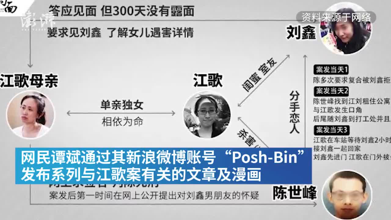 上海二中院发布信息表示,2016年11月3日,江歌在日本留学期间遭其室友刘鑫的前男友陈世峰杀害。2017年12月20日,陈世峰被日本东京地方裁判所判处有期徒刑20年。该案引起了网民的广泛关注和评论。网民谭斌通过其新浪微博账号“Posh-Bin”,发布系列与江歌案有关的文章及漫画。江秋莲认为上述漫画和文章对江歌及其本人构成侮辱、诽谤,遂以谭斌犯侮辱罪、诽谤罪向上海普陀法院提起诉讼。