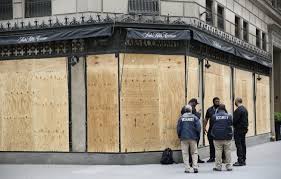 11月3日美国大选即将到来,纽约曼哈顿中城的梅西百货和沿街商家,担心发生抗议者洗劫商家,近日开始纷纷在店门口装上木板封店,为选举日当天抗议者发起的暴乱做防护措施。