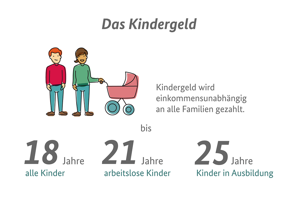 在德国,儿童的基本照料得到保障,这有儿童福利。如果孩子未满18岁(在某些情况下,也可以申请和领取成年儿童的儿童福利),住在你家庭的儿童(这也适用于继子女,孙子女或寄养子女)。通常,每位孩子每月至少可领取204欧元(从2021年1月1日起:219欧元)。如果有多个孩子,则其数量决定了总共领取多少儿童金金额。如果其中一个孩子不住在一起,这同样适用:从第三个孩子开始,有权获得更多的儿童福利,即使孩子的兄弟姐妹与另一方父母住在一起。成年儿童在18岁时,只有在接受教育上学或职业培训,或者在就业局登记为寻求工作或培训者时,才有权领取儿童福利金。在这种情况下,儿童金将继续支付到25岁(儿童完成法定军事或公务员的月份,在25岁以后将继续支付)。残疾儿童没有年龄限制,就残疾儿童而言,他们是否接受教育等并不重要。如果残疾发生在25岁之前,将无年龄限制地领取儿童福利金。